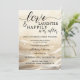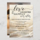 A bohemian chic wedding reception only or happily ever after invitation featuring a gold design with festive sparkling lights. On the back is your custom photo and a QR code template (optional). The text background overlay on the back can be deleted if you do not need it. Great after an elopement or private wedding ceremony.