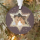 Élégante star Hanoukka de David photo Hanoukka ornement. Des étoiles dorées brillantes créent l'étoile de David avec un espace réservé photo placé dans l'étoile de David. L'envers est orné d'un élégant faux arrière - plan doré avec les mots "Notre premier Hanoukka comme". Customisez avec votre nom. Oeuvre de Moodthology Papery.