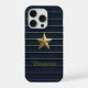 Gold Star sur Navy Blue iPhone 15 Pro Coque