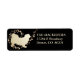 This pretty return address label features a gold silhouette Pekingese dog image barking at a swirl of gold stars. The image is placed on a dramatic black background. Your custom text is in light gold at the right of the image.