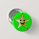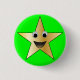 This pin back button features an illustration of a gold coloured star with a cheerful smiling face an eyes set against a vivid green background. It can be an award presented to a child for classroom merit.