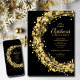 Circles and gold stars and dots on a black background, your party information is featured in chic lettering on these Christmas holiday party invitations.
