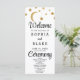 Introducing our celestial masterpiece, the White Wedding Program, adorned with a celestial spectacle of gold hanging stars and a crescent moon along the top border. This ethereal design is tailor-made for couples envisioning celestial, starry, or mystical themes, creating an enchanting atmosphere for their special day. The front of this celestial program unfolds like a cosmic tableau, presenting the couples' names, the cherished wedding date, the enchanting location, and intricate ceremony details against the pristine white background. The celestial top border, adorned with golden hanging stars and a graceful crescent moon, bestows a magical touch, perfect for those seeking to infuse their celebration with the enchantment of celestial or mystical themes. The predominant simple block font ensures clarity and elegance, allowing the cosmic details to shine. Adding a touch of celestial magic, the words "Welcome," "Ceremony," and "Wedding Party" are intricately adorned in a captivating script font. These embellished script elements echo the celestial theme, lending an air of enchantment to the program. The delicately crafted script fonts introduce a whimsical and mystical element, aligning seamlessly with the celestial inspiration. Flipping to the back, the celestial dance continues with the golden hanging stars and crescent moon along the top border, maintaining the celestial motif throughout the program. Below, the esteemed wedding party members are listed in a clean and elegant layout, ensuring that the celestial theme remains a captivating feature from start to finish. Designed for those seeking celestial elegance, our White Wedding Program, adorned with a celestial display of gold hanging stars and a crescent moon, radiates with celestial splendor. This enchanting design is the perfect choice for couples aspiring to infuse their celebration with the magic of celestial or mystical themes, creating an ethereal ambiance for a night to remember.