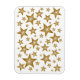 Modern design with "shining" gold and white stars on a white background. Fridge magnet with a gold and white customizable design for you to personalise with your own text, images and ideas. Please note that this is a printed image created using original photographs and digital techniques, it does not shine or contain real sparkles.