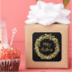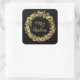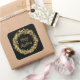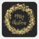 Twinkling gold stars, circles and dots surround the words "Merry Christmas" on black square stickers are perfect for your holiday gift giving and more. MATCHING items in our store.