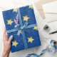 Gold Stars On Blue With Snowflakes Wrapping Paper