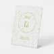Gold Stars On White In Gold Circle Tabletop Pedestal Sign