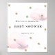 This cute baby shower welcome sign poster features white background with faux gold glitter stars and pink fluffy clouds. Change the background colour and personalize it for your needs. You can find matching products at my store.