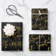 Wrap your gifts with sparkle and joy using this luxurious 3-sheet Gold Stars & Sparkles Black Wrapping Paper Set. Each sheet is designed with a elegant black backdrop and elegant gold script typography, making every present shine: