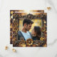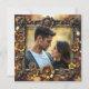 Cool and unique wedding wedding RSVP cards. Steampunk themed with gold metal gears, flowers and a gold bokeh background. Upload your favourite picture in the personalize area and edit the text on the back to add your wedding reception meal choices.