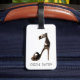 Love shoes? Then love this luggage tag that stands out from all the others. It's white, has a pair of elegant, gold, high stiletto heeled shoes, and you can personalize it with your monogram / intials and phone number. Matching luggage is available from LyricalSixties.
