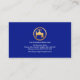 'Overleaf, in a blue cover, the gold logo is at the top followed by your prestigious name, contact details and a slogan option to publicize your services.