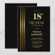 Invite your friends and loved ones to your birthday celebration with this modern gold striped black 18th birthday party invitation. The customizable text area in this invitation template allows you to include all the necessary details for your special birthday celebration, including the date, time, venue, and RSVP information. A variety of paper types and corner styles are available for your unique invitations, along with the option to download if you prefer a digital format.