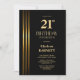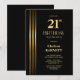 Invite your friends and loved ones to your birthday celebration with this modern gold striped black 21st birthday party invitation. The customizable text area in this invitation template allows you to include all the necessary details for your special birthday celebration, including the date, time, venue, and RSVP information. A variety of paper types and corner styles are available for your unique invitations, along with the option to download if you prefer a digital format.