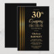 Gold Striped Black 30th Surprise Birthday Party Invitation