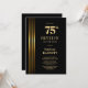 Gold Striped Black 75th Birthday Party Invitation