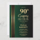 Gold Striped Black Green 90th Surprise Birthday Invitation