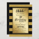 A modern black and gold striped surprise 21st birthday party invitation.