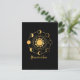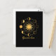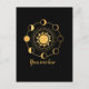 Centre sun graphic surrounded by a circle of moon phases in gold on black background. Add your name, company, brand or other special message to personalize in gold coloured modern script text.