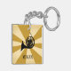 Show off your love of the french horn with this bold and fun design! This personalized gold sunburst french horn silhouette keychain makes a great gift for music teachers, musicians, music students, and music lovers alike. A great personalized keychain for holding keys for the home, work office, music classroom, music studio and music school. Great gifts for band or orchestra teachers and french horn students. Customize and personalize by adding the name of the gift recipient or your own name and enjoy!