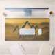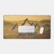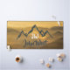 Gold sunrise personalizable mountains monogram. Vector drawn mountains in grey blue colour with a personalizable monogram and your name. In te background a stunning gold sunrise with fog in the valley and sun rays. Great gift from someone who loves mountains.