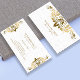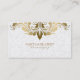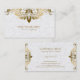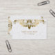 Elegant white plush floral damasks background with gold tones vintage swirly floral lace. Fully customizable double-sided business card template.