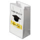 Design for graduation ceremony, with gold tag for customizable name text. Customizable background colour. Customizable text.