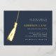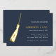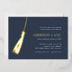 Celebrate their big milestone with these chic foil invitations that are perfect for a graduation celebration. Luxe design features the graduate's name and a grad cap tassel illustration in elegant gold foil on a navy blue background. Personalize with your party details aligned at the right in modern white lettering. An elegant and upscale choice for fabulous grad parties!