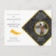 Elegant, and modern gold foil graduation party invitation. Easily personalize the design by adding the graduate's name, and graduation year, to create a unique party invitation card to announce your graduation and the graduation party. Use your school colour scheme to change the cap topper colours.