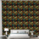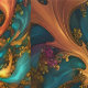 Pictured In A Abstract Art Design Are Gold Teal And Orange Flames.