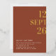 Gold modern typography wedding invitation and details with photo on back side in shades of terracotta, brown, burnt orange colours. Please contact me if you need additional items.