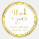 Gold glitter confetti & foil effect thank you text in a swirly font with room for your personalized text on a round sticker. These stylishly simple stickers are perfect for party favours, wedding favours, bridal showers and envelope seals.