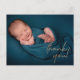 Introduce the newest member of your family to the world and express your heartfelt gratitude with our exquisite Gold Script Photo Birth Announcement Thank You Postcard. This elegant and modern keepsake marries the cherished tradition of sharing your newborn's arrival with the thoughtful gesture of a thank you note, all while offering a personalized touch that will leave a lasting impression on your loved ones.