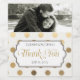 Style label on sweet gold dots with Thank You Typography Your Photo elegant Romantic Rustic Wedding Wine Label. Featuring your photo here on this wine bottle label for a unique personalized photo wine label that will capture that custom romantic feel for all your guests.