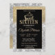 Gold glitter tiara on silver and gold glitter bokeh ombre Sweet 16 birthday party invitation.