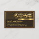 An exquisite brown layered cover is encapsulated by a faux gold rectangular frame. A set of gold handyman tools logo you can use rest just above the gold tab. Near the base you have your prestigious name, job title and the contact details.