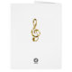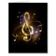 Jewelry, gold, musical treble clef with golden notes and stars on black glowing background.