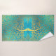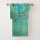 Gold Tree and Leaves Reflection on Turquoise Blue Bath Towel Set