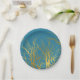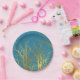 Gold Tree Branches Pattern Blue Background Paper Plate