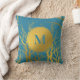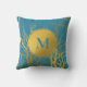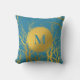 Gold Tree Branches Pattern Blue Monogram Throw Pillow