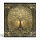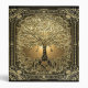 A beautiful ornate design with a gold tree of life with an ornate frame and a heart at the roots. There is a night sky background.