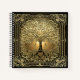 A beautiful ornate design with a gold tree of life with an ornate frame and a heart at the roots. There is a night sky background.