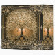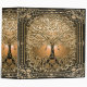 A beautiful ornate design with a gold tree of life with an ornate frame and a heart at the roots. There is a night sky background.