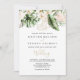 This gold tropical foliage floral front and back wedding invitation is perfect for a rustic wedding. The design features hand-painted watercolor gold and tropical green foliage with elegant blush flowers.
