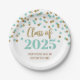 Gold Turquoise Confetti Graduation 2025 Paper Plate