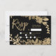 Gold typography leaf floral black rsvp wedding 2 card