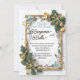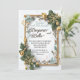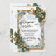 A modern, chic and elegant gold typography Floral green watercolor Christmas winter wedding party invitation with hand painted green watercolor leaf foliage on a chic yellow gold gradient with white snow and snowflakes..