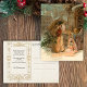 Old world Father Christmas in heavily ornamented gold robes bearing gifts and tree with winged angel. Beautiful complementary graphics on back with editable text fields.