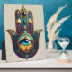 Gold Violet Teal Hamsa w/ Turquoise Third Eye Plaque