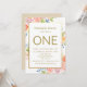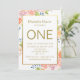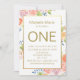 Gold Watercolor Floral First Birthday Invitation